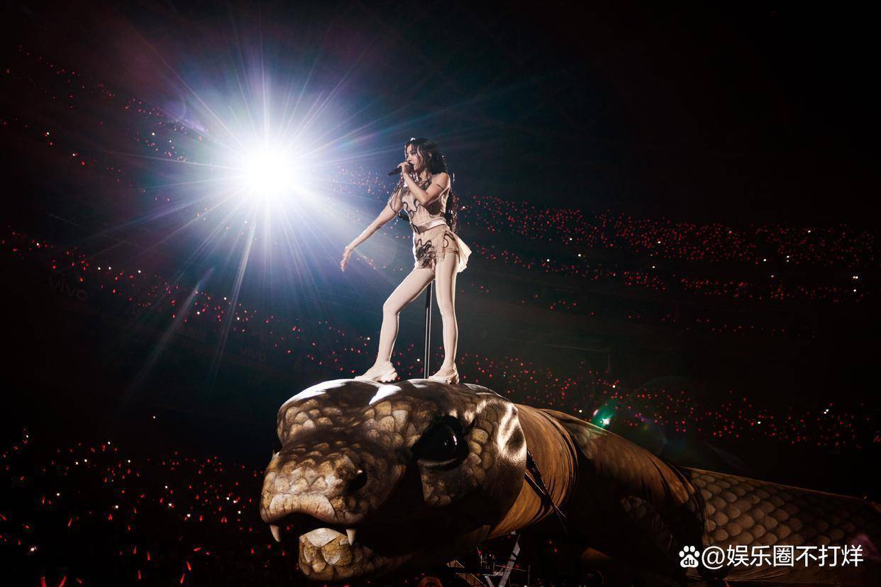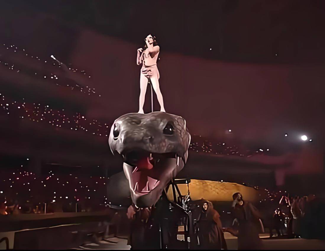 舞台上的机械蛇确实够震撼。鳞片能随音乐变换光泽,30米的身躯在8K地屏上蜿蜒时,连看过无数大场面的业内人士都感慨“像走进奇幻电影”。但谁能想到,这个灵感源自荷兰名画《人间乐园》的设计,会被解读成“邪教符号”?团队后来在声明里哭笑不得地解释:蛇象征“蜕变重生”,还融合了女娲灵蛇的东方意象;金色公牛则是致敬生命力。可谣言已经像病毒一样扩散,有博主把演唱会剪辑成“光明会献祭现场”,播放量破千万。